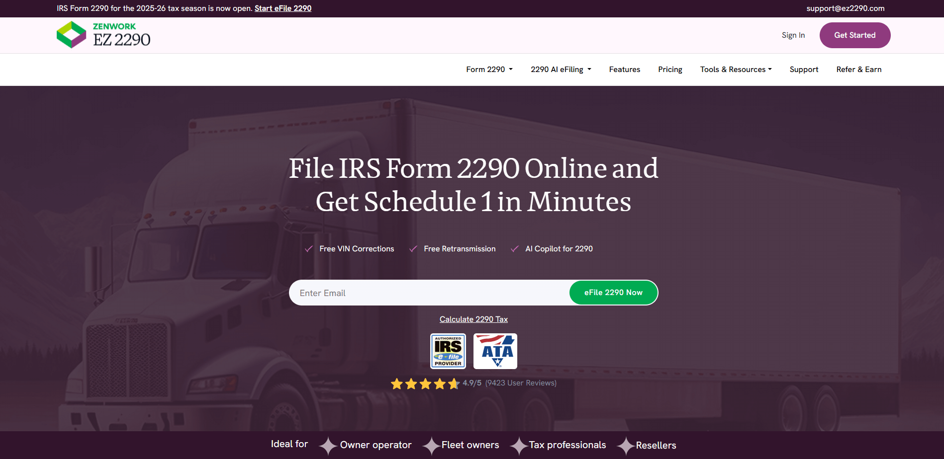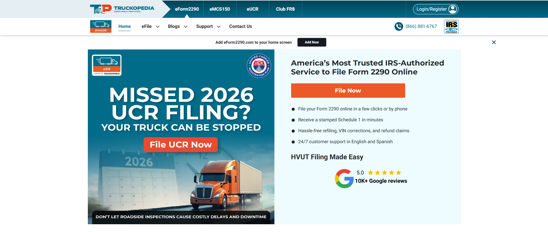 | Tax2290 | Basic multi-vehicle filing | Simple compliance first flow |
