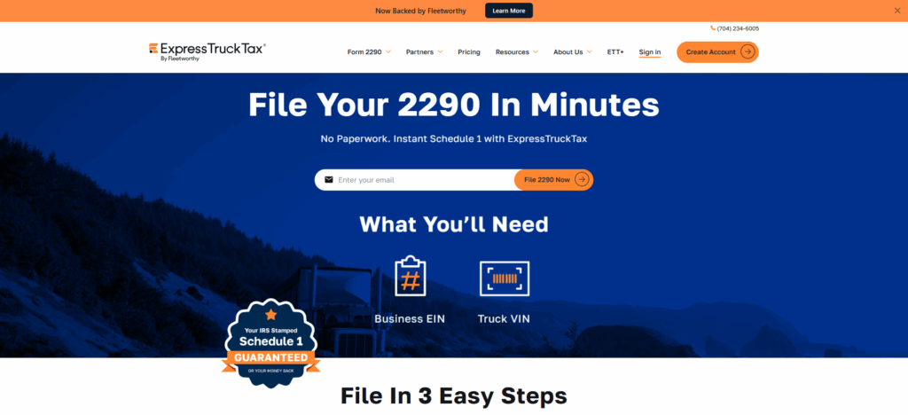ExpressTruckTax is a popular eFiling platform in the HVUT space. The platform has been in the industry for over a decade and focuses on simplifying the complexities of HVUT for single truck drivers and operators to massive logistics enterprises. Furthermore, the platform offers the ExpressGuarantee, which promises 100% refunds if your return is rejected by the IRS.